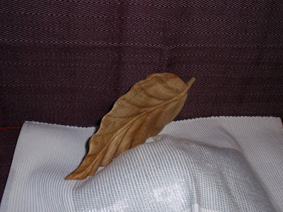 Aqui estão as fotografias da folha, já pronta. As dimensões são 25cm de comprimento por 12 cm de largura na parte mais larga.